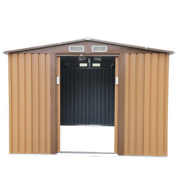 [Spacious Inner Space]This 8' x 8' tool shed offers an effective solution for storing your outdoor furniture, lawnmowers, wheelbarrows, bicycles and more.